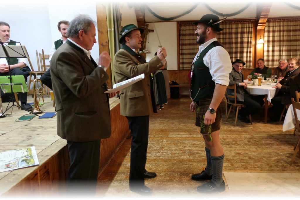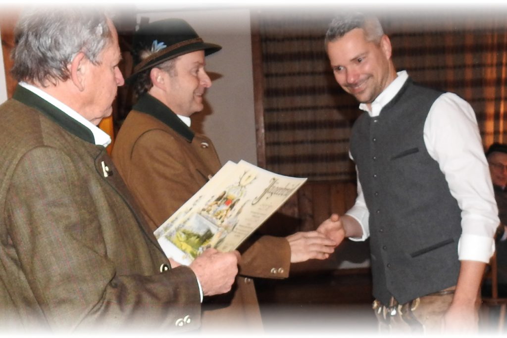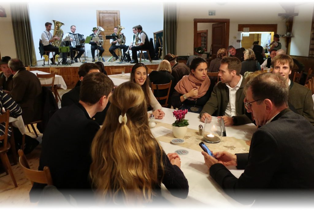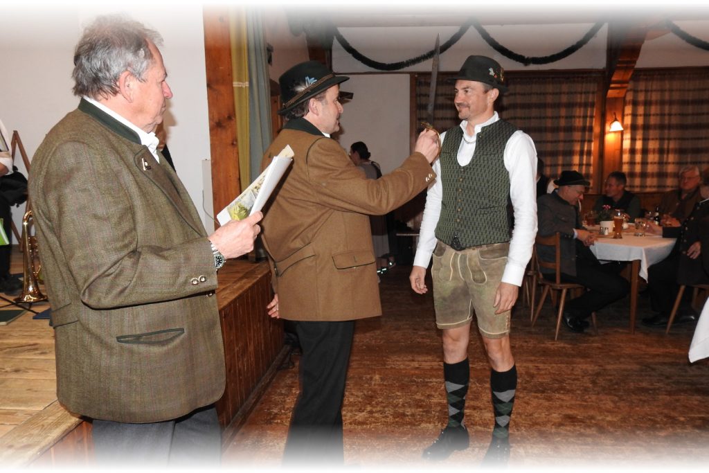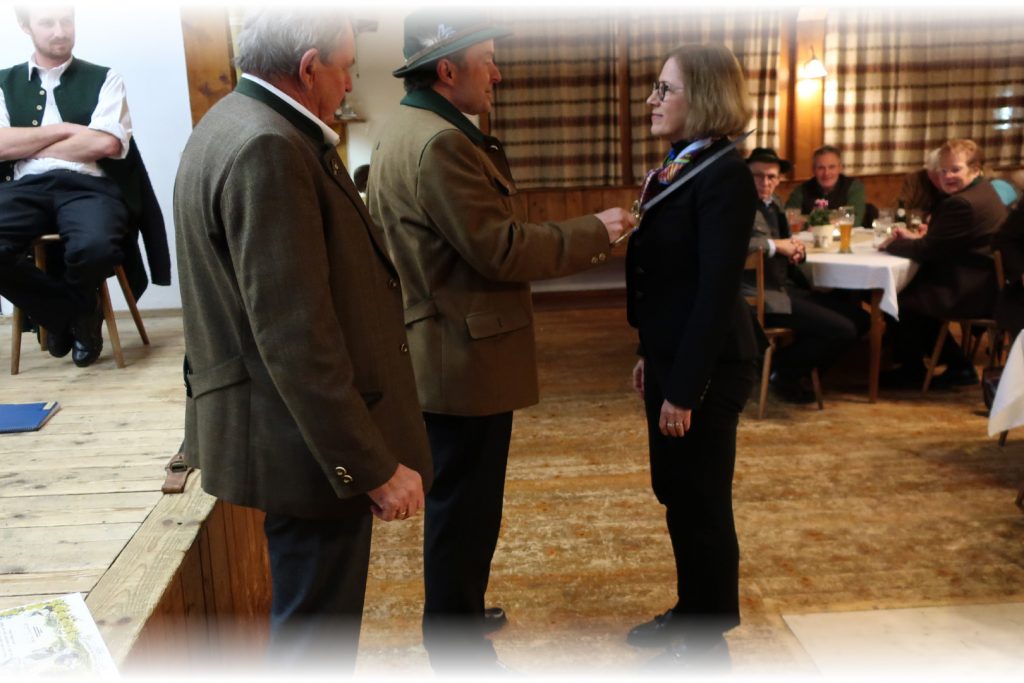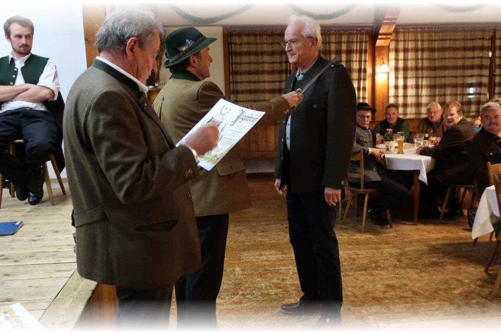 Im Anschluss zieht die Gemeinschaft hinauf zum Gasthof Peiß, wo in Anwesenheit der Geistlichkeit der feierliche Jägerschlag bevorsteht. Dort warten bereits Heinz Repert und Stefan Rührgartner – bewaffnet mit Urkunden, Jagdmesser und einem breiten Lächeln – um den frischgebackenen Jägerinnen und Jägern den Schritt in die Waidgemeinschaft zu besiegeln.