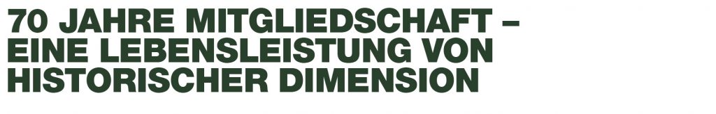 Den Höhepunkt der Ehrungen bildete schließlich ein Jubiläum, das selbst in der langen Geschichte der Kreisgruppe eine absolute Ausnahme darstellt: 70 Jahre Mitgliedschaft.